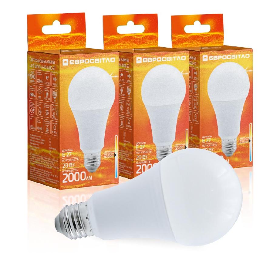 Лампа светодиодная A80 20Вт 4200К Е27 Евросвет