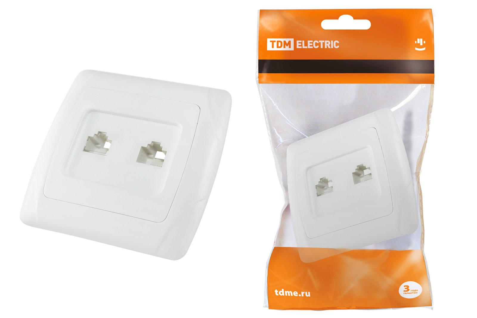 Розетка телефонная двойная белая ОНЕГА ТDМ